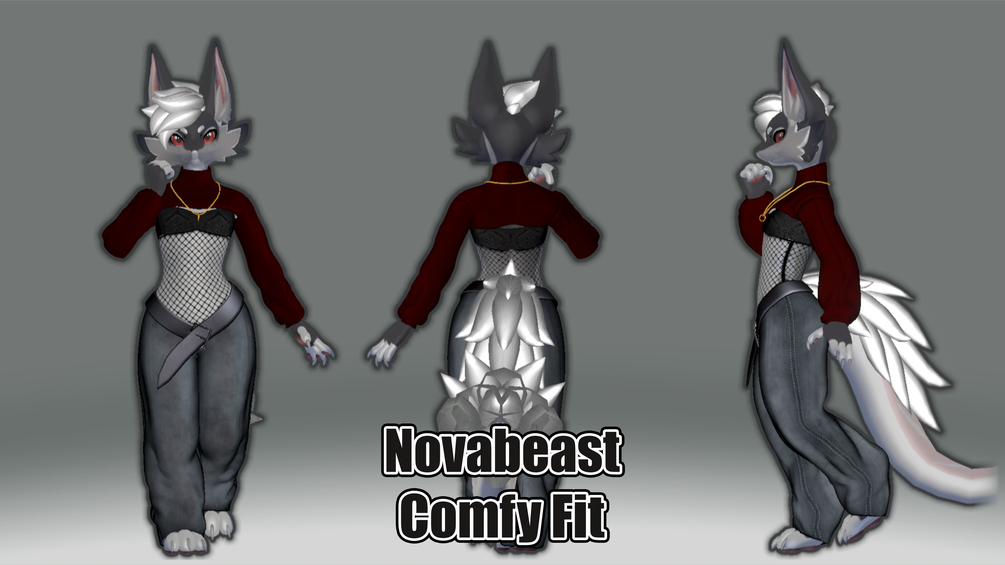 An outfit for the 'Novabeast' avatar, fully set up with VRCFury